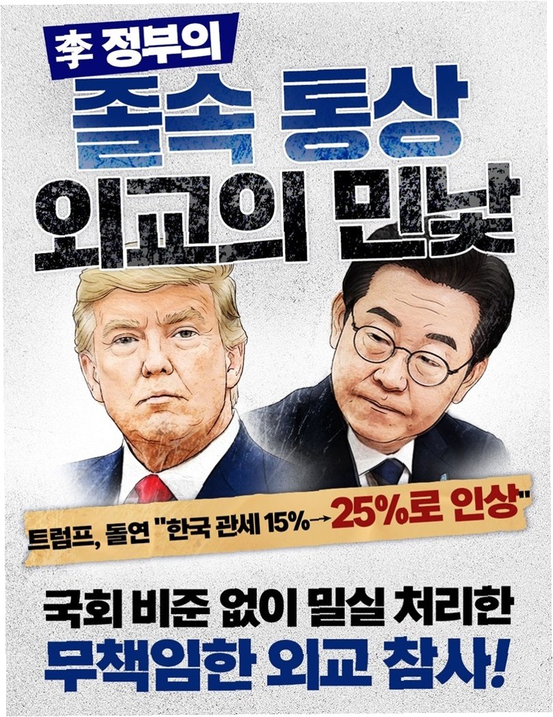 국민의힘은 미국 정부가 한국 등에 부과한 상호 관세에 대한 미국 연방대법원의 판결과 관련하여, '상호 관세의 법적 기반이 흔들린 지금 우리만 대규모 투자를 떠안고 협상 지렛대가 약화한 처지가 됐다'고 강하게 비판했습니다. 조용술 국민의힘 대변인은 논평을 통해 이재명 정권이 한미 정상회담에서 대규모 대미 투자 약속을 '조인트 팩트시트'로 포장하며 거창한 외교 성과로 홍보했다고 지적했습니다. 이는 일방적으로 패를 먼저 내준 협상이며, 협상이 아닌 굴복이라는 비판을 피하기 어렵다고 덧붙였습니다. 따라서 협상 전모를 투명하게 공개하고 국회와 국민 앞에 책임 있게 설명해야 한다고 강조했습니다.