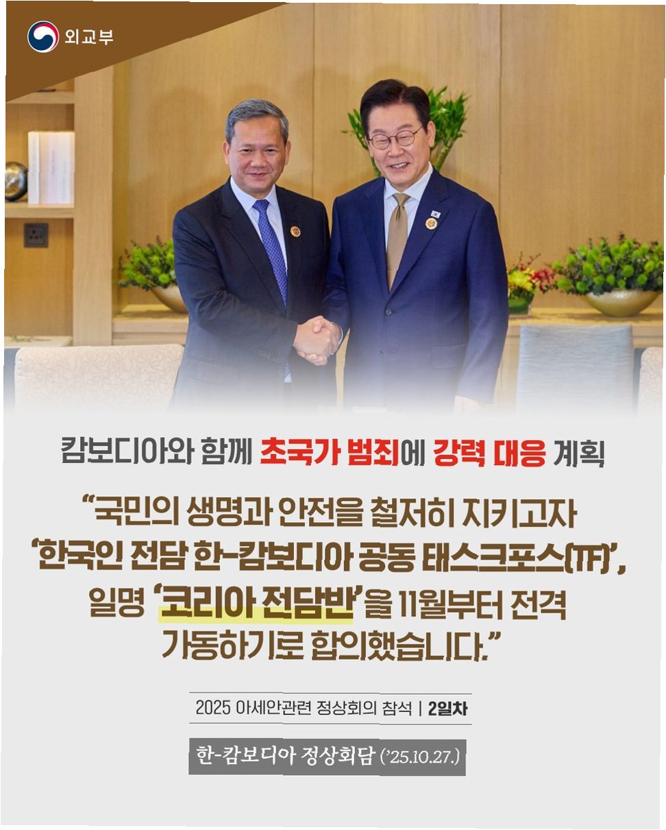 대통령은 캄보디아 보이스피싱 범죄 연루 조직원들의 국내 송환을 언급하며, 초국가 범죄의 심각성을 강조했습니다. 이러한 범죄는 개인의 삶을 파괴할 뿐만 아니라, 사회 전체의 신뢰를 무너뜨리고 외교적 문제까지 야기할 수 있습니다. 이에, 대통령은 관계 부처에 철저한 수사를 지시하고, 범죄의 뿌리를 뽑아내겠다는 의지를 피력했습니다.