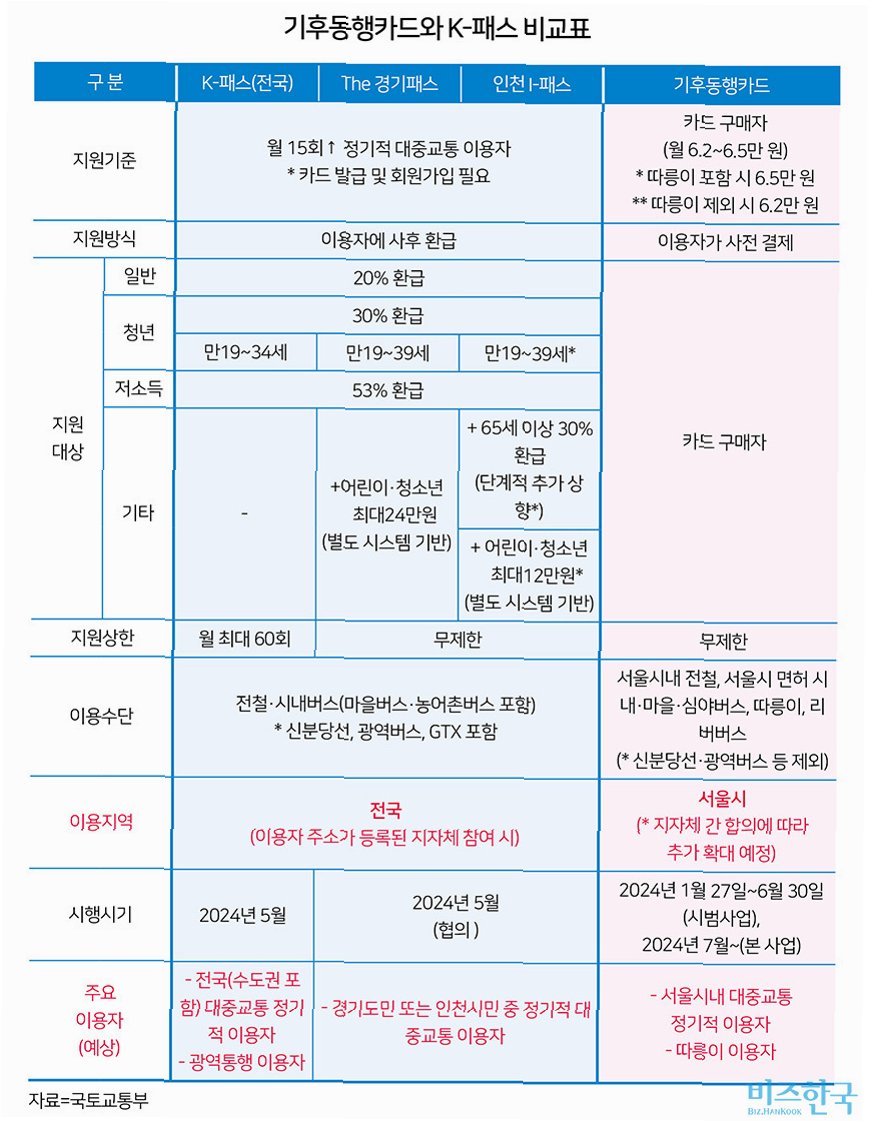 Q.기후동행카드와 K-패스, 어떤 차이가 있나요?