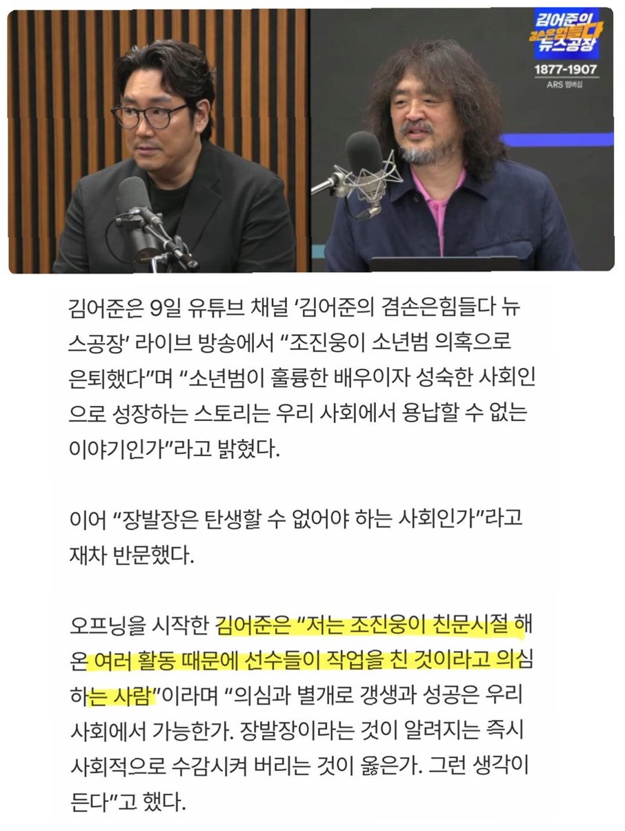 방송인 김어준 씨가 배우 조진웅 씨의 과거 소년범 전력 관련 논란에 대해 입을 열었습니다그는 조진웅 씨가 '문재인 정부 시절의 활동 때문에 선수들한테 작업을 당한 것'이라고 의심하며, 사건의 배경에 대한 의문을 제기했습니다김어준 씨는 9일 유튜브 채널 '김어준의 겸손은 힘들다 뉴스공장' 라이브 방송을 통해 이러한 주장을 펼쳤습니다.