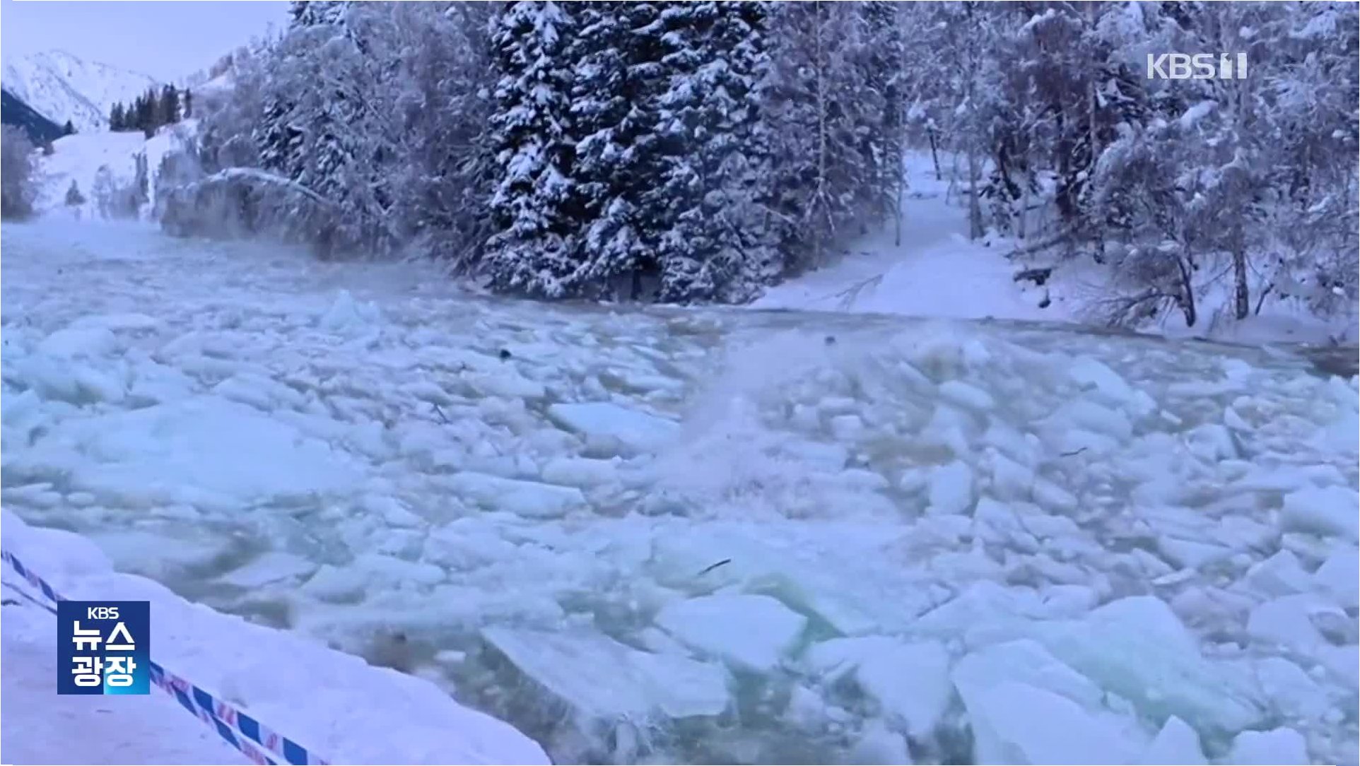 눈부신 설경, 순식간의 공포: 얼음 쓰나미가 덮친 카나쓰강의 비극
