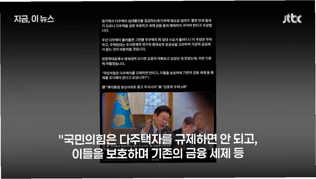 이재명 대통령은 장동혁 대표의 다주택 보유 사실을 지적하며, 국민의힘이 다주택자 규제에 반대하는 입장을 보이는 것에 의문을 제기했습니다. 그는 집이 단순한 투자 수단을 넘어 주거 수단임을 강조하며, 투기 목적으로 집을 사 모으는 행위가 사회 문제를 야기한다고 비판했습니다. 이는 부동산 정책의 근본적인 방향성에 대한 논쟁을 불러일으켰습니다.