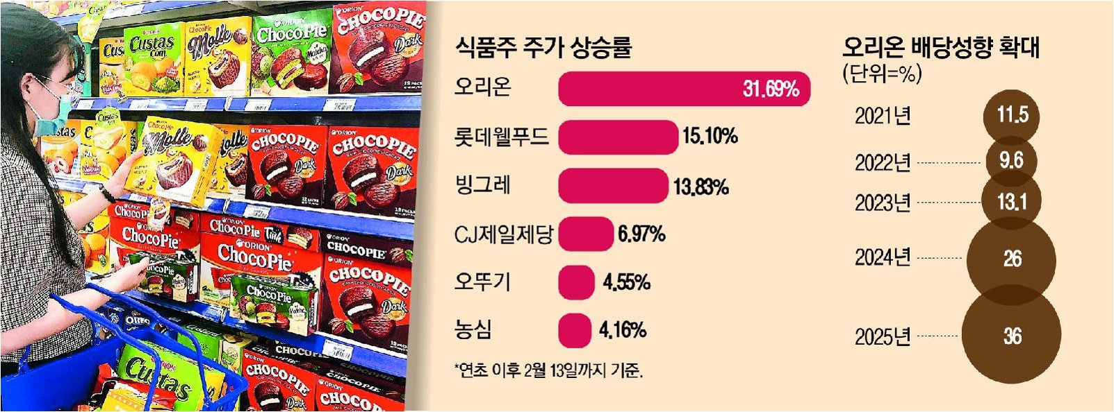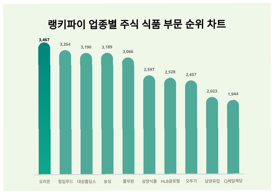 Q.오리온의 주가 상승률이 다른 식품 기업 대비 높은 이유는 무엇인가요?