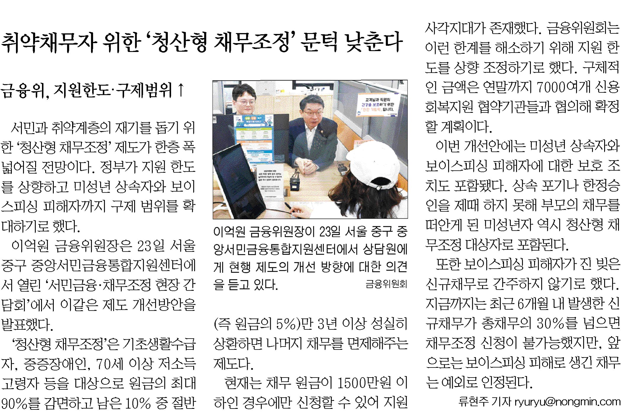 A.아니요, 이 제도는 개인회생, 파산 등으로 원금을 감면받은 기초생활수급자, 중증장애인 등 취약계층을 대상으로 합니다. 일반 채무자는 해당되지 않습니다.
