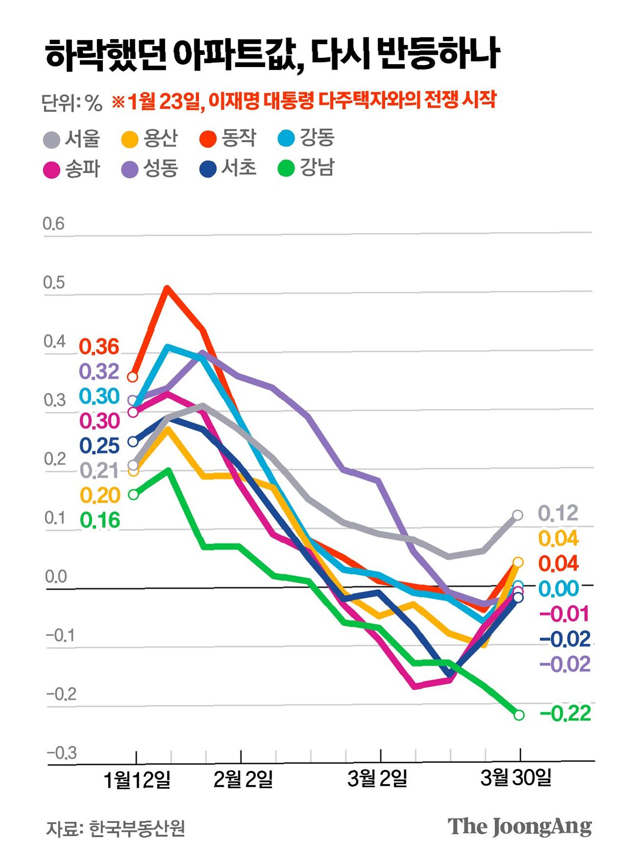 Q.용산구와 동작구의 아파트 가격이 하락에서 상승으로 전환된 이유는 무엇인가요?