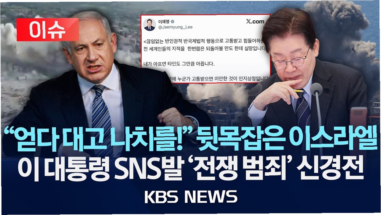 이재명 대통령이 이스라엘 정부를 향해 거듭 공개 비판의 목소리를 높였습니다. 대통령은 "끊임없는 반인권적·반국제법적 행동으로 고통받고 힘들어하는 전 세계인들의 지적을 한 번쯤은 되돌아볼 만도 한데 실망"이라고 지적하며, 이스라엘의 중동 전쟁 책임론을 겨냥했습니다. 이는 전날 이 대통령이 가자지구 영상을 공유하며 유대인 학살을 언급한 것에 대해 이스라엘 외교부가 '홀로코스트 경시'라며 반발한 데 따른 재반박입니다.