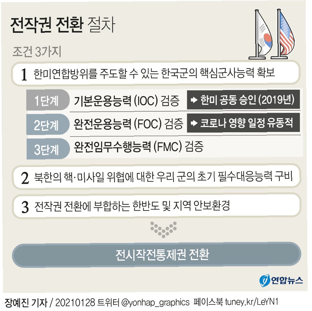 A.한국군의 독자적인 작전 수행 능력을 갖추는 것, 즉 한국군이 북한의 위협에 대응할 수 있는 군사적 역량을 확보하는 것이 핵심 조건입니다.