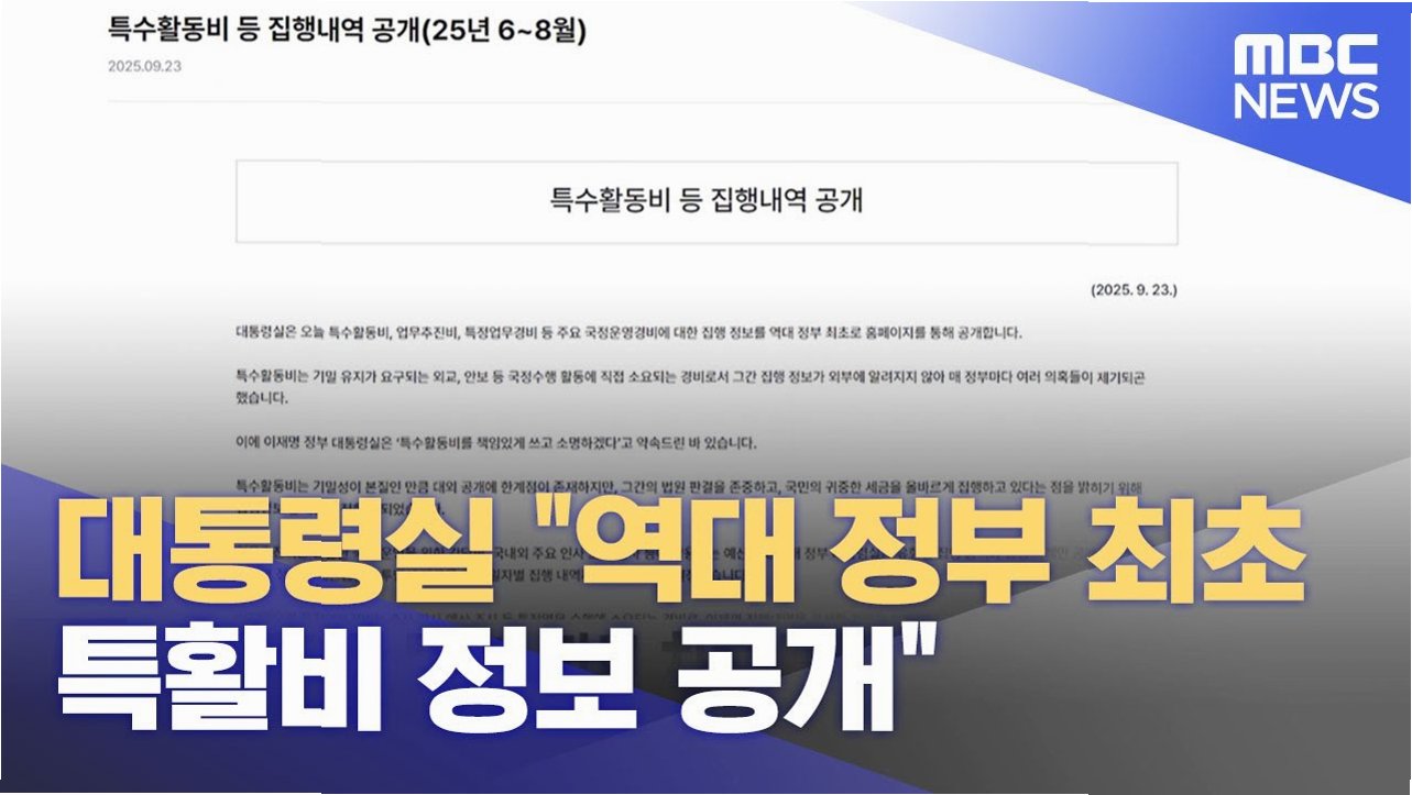 청와대가 지난해 편성된 특수활동비, 업무추진비, 특정업무경비의 집행 내역을 누리집에 공개하며 예산 절감 성과를 밝혔다. 특히 2025년도 특수활동비 예산 41억 3천만원 중 7억 4천만원을 국고에 반납하며 투명하고 효율적인 예산 집행의 모범을 보였다. 이는 지난해 9월부터 12월까지의 집행 내역 추가 공개를 통해 지난해 연말까지의 모든 비용 집행 현황을 투명하게 공개한 결과다.