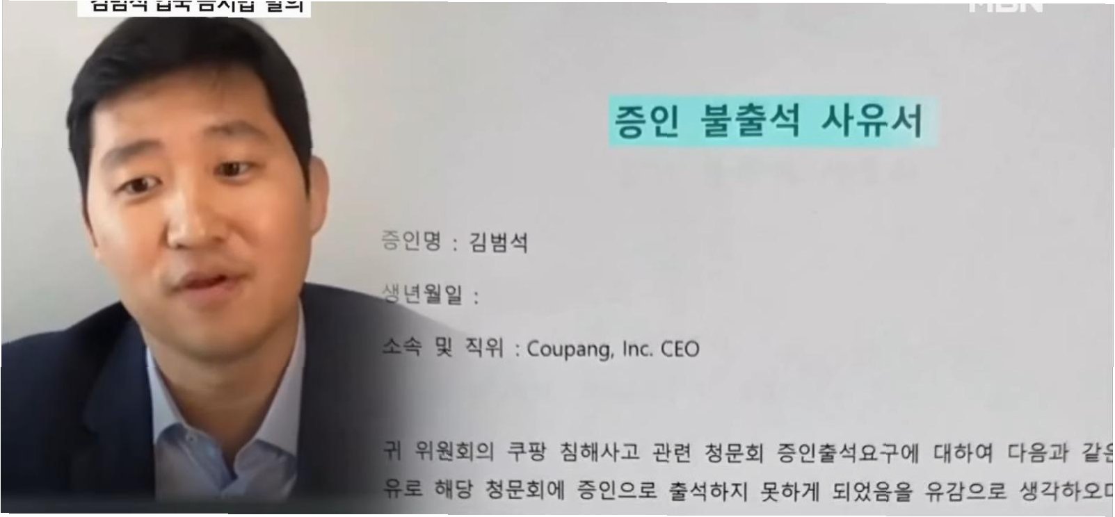 A.김범석 의장은 '해외 거주'와 '공식 비즈니스 일정'을 이유로 청문회에 불참했습니다. 이는 외국 국적을 가진 그의 신분을 이용, 국회의 출석 요구에 응하지 않은 것으로 보입니다.