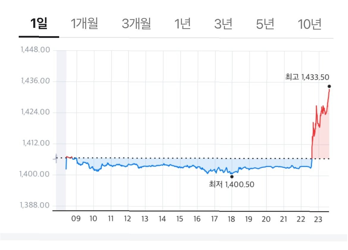 환율, 외환당국의 개입으로 1,450원대 급락