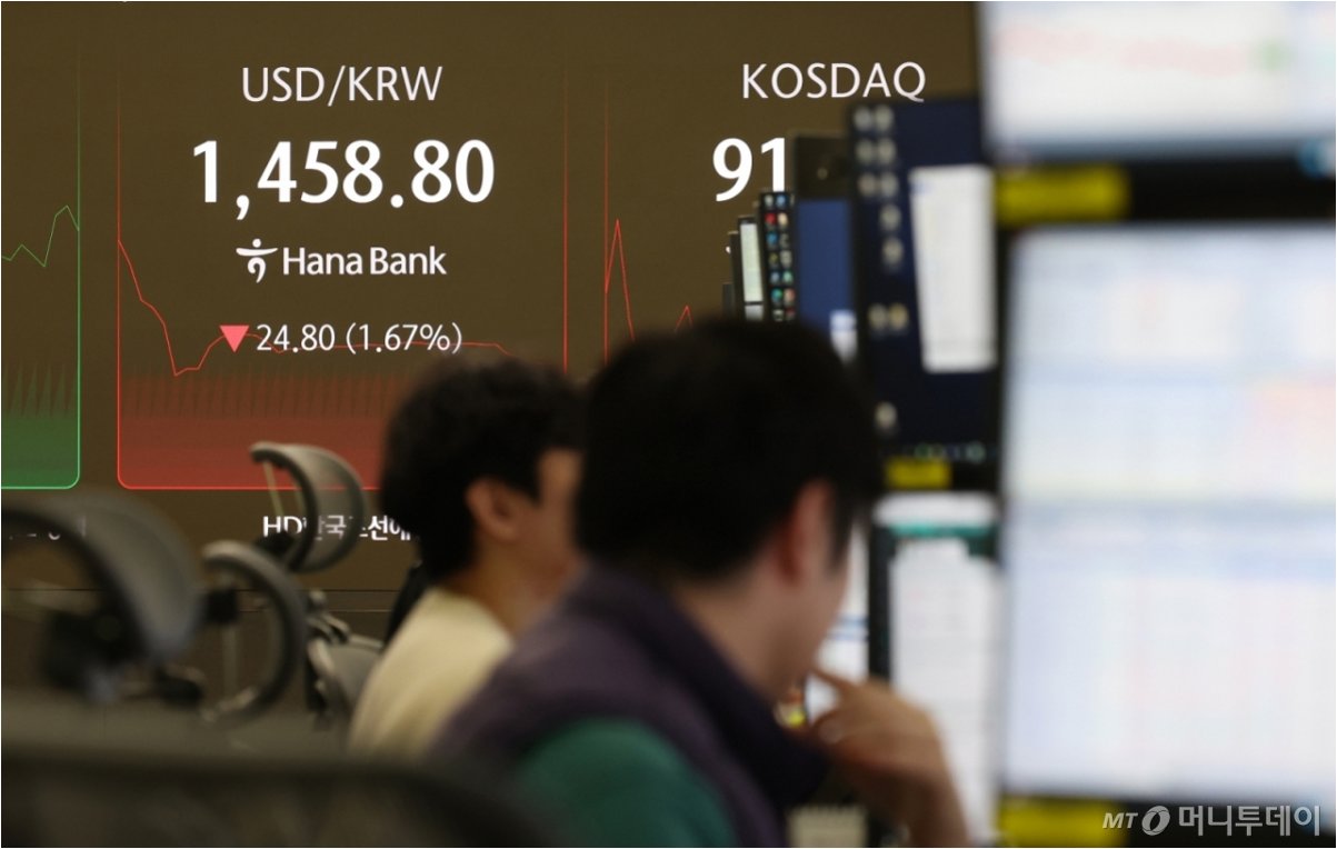 원/달러 환율이 외환당국의 강력한 구두개입에 힘입어 급락했습니다. 24일 서울 외환시장에서 달러 대비 원화 환율은 장 초반 1,484.9원으로 시작하며 연고점을 위협했지만, 외환당국의 개입 발언 이후 1,450원대까지 떨어졌습니다. 이는 외환당국이 원화 약세에 대한 경고 메시지를 시장에 전달한 결과로 풀이됩니다.