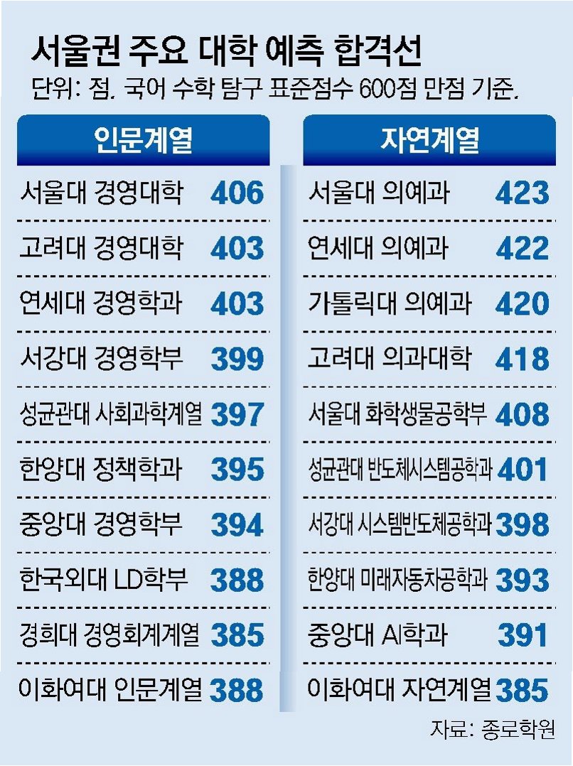 의대, 경영학과 등 주요 학과, 합격선 상승 불가피