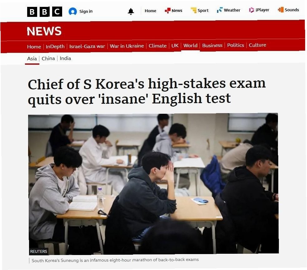 BBC, 한국 수능 영어 난이도에 '경악'하다