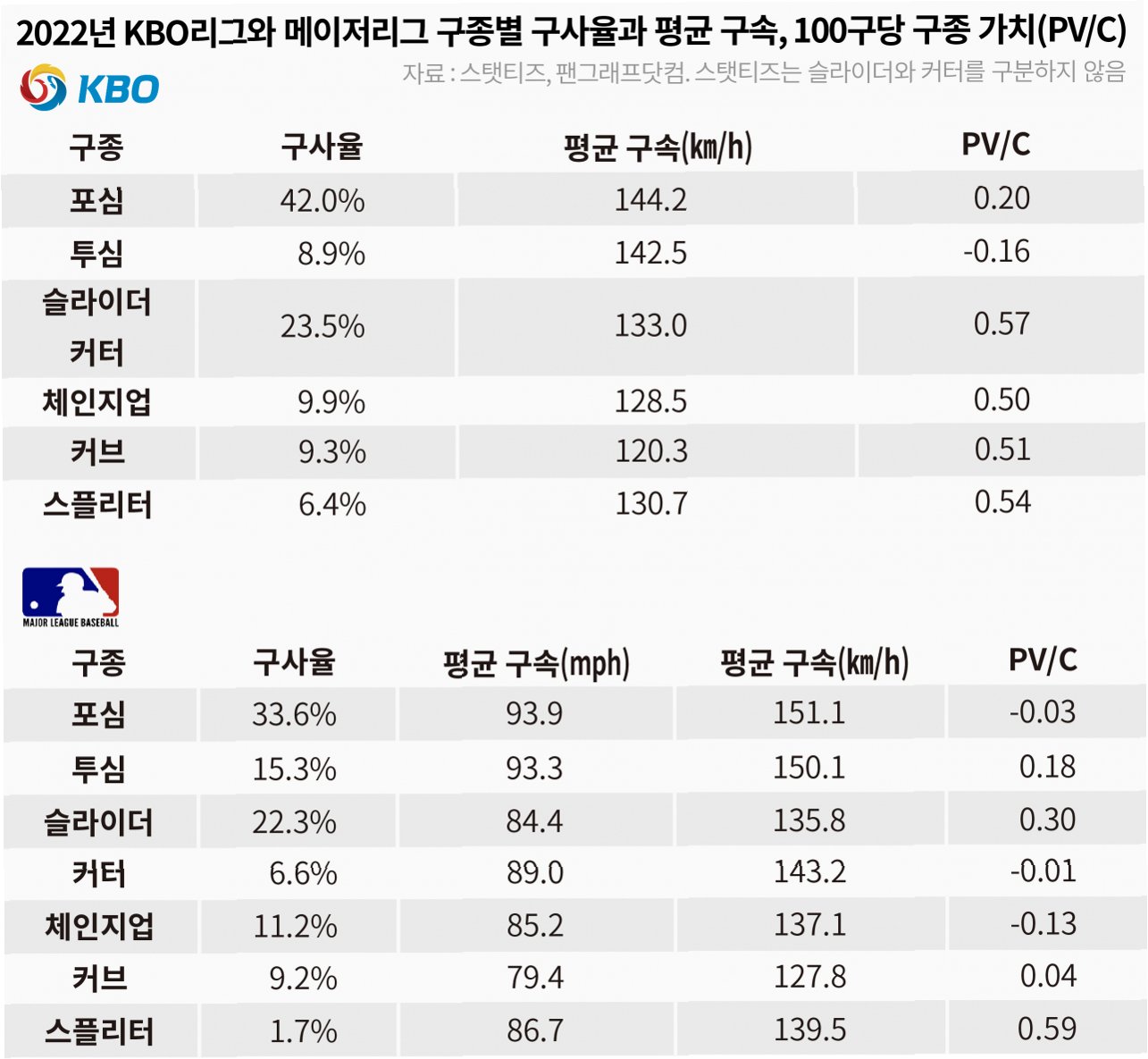 A.ESPN은 KBO 리그 선수들이 메이저리그의 새로운 투수들에 적응해야 하고, 리그 팀 수가 적어 투수들을 파악하기 쉽다는 점, 그리고 평균적으로 MLB 투수들이 KBO 투수들보다 신체 조건이 우수하다는 점 등을 근거로 들었습니다.